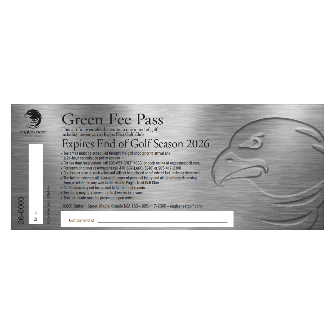 - Fully Transferable Unrestricted Green Fee Pass for 1 round of golf
